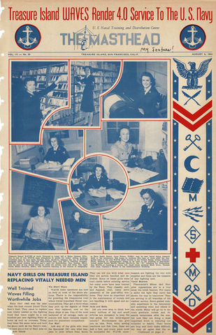 In 1942, the first eighteen women who were part of the Women Accepted for Volunteer Emergency Service (WAVES) came aboard Treasure Island. As operations in the Pacific took more Navy men overseas, the WAVES moved in to fill the empty seats and kept the huge naval station in production.